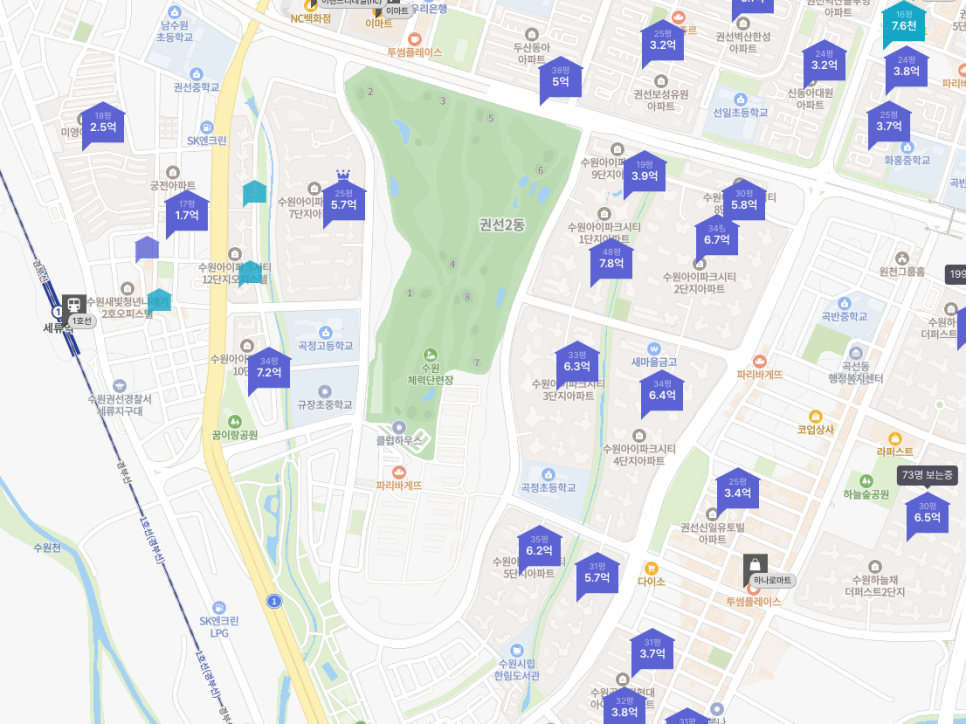 7단지가 권선동 대장으로 거래량과 가격이 다 높은 편