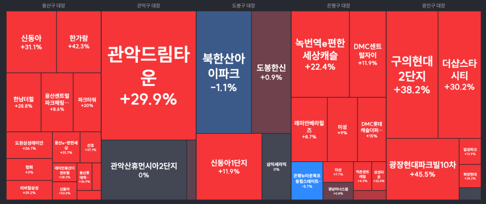 위의 빨간색 데이터 이미지는 지난 1년간 서울 지자체별